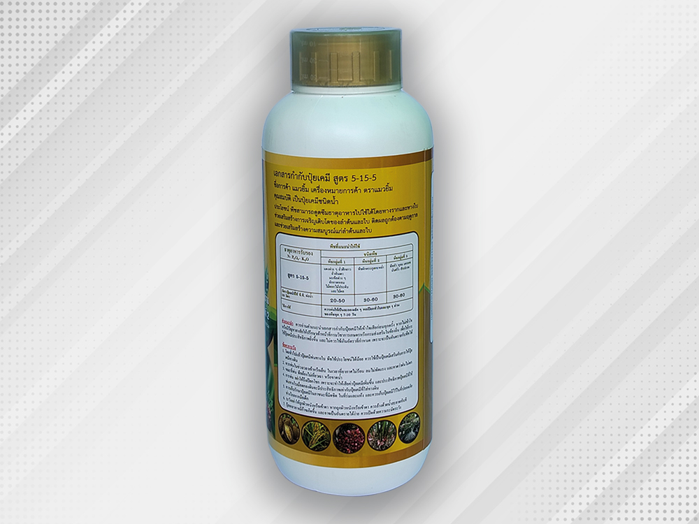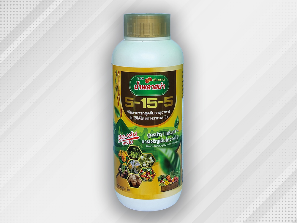 ปุ๋ยน้ำเคมีสูตร 5-15-5 เป็นสูตรที่มี ฟอสฟอรัส (P) สูง เมื่อเทียบกับไนโตรเจน (N) และโพแทสเซียม (K) ครับ ✨