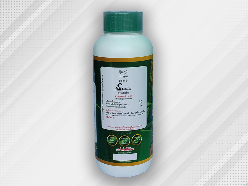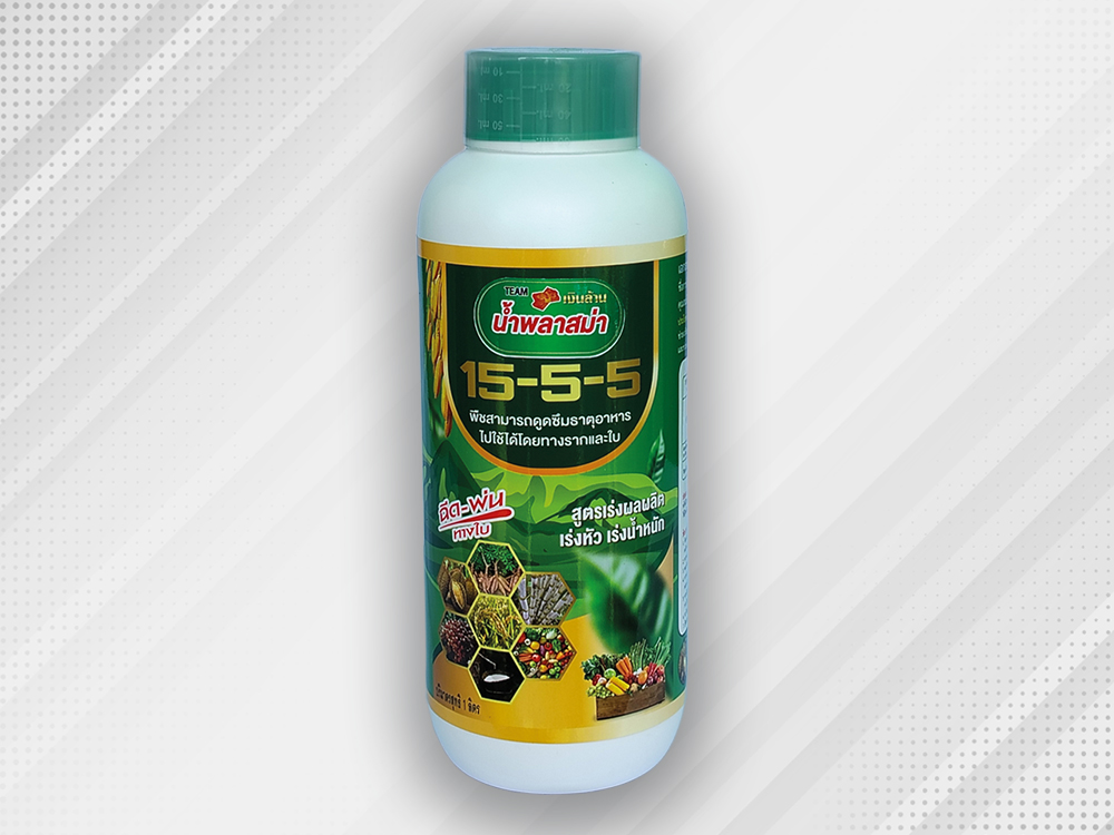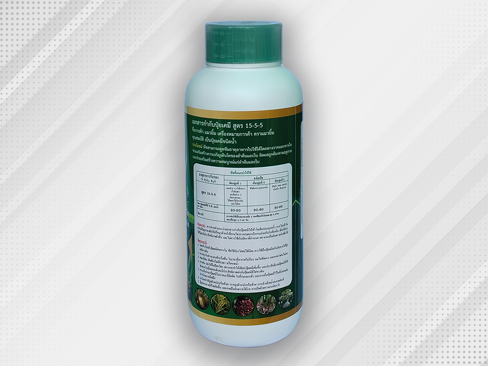ปุ๋ยเคมีชนิดน้ำสูตร 15-5-5 มีสัดส่วนธาตุอาหารหลักคือ
